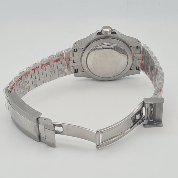 The case and bracelet are all new stainless steel construction with an integrated double clasp release. The bezel insert is aluminium and in the vintage Rolex Master style with white on black numbering. Unlike the newer version on the Masters II, the bezel is bidirectional and is a friction fit, ie, no click. There is a sapphire glass crystal, with clear anti reflective coating and a magnifying date window at the 3 o’clock position.